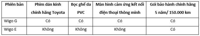 * Khách hàng ký hợp đồng từ 01/6/2021 và thanh toán đầy đủ đối với Toyota Wigo G phiên bản mới từ ngày 07/6/2021 đến hết ngày 31/12/2021 sẽ được Công ty Ô tô Toyota Việt Nam cùng hệ thống đại lý dành tặng ưu đãi lên đến 20 triệu đồng bao gồm bọc ghế da PVC, phim dán kính chính hãng Toyota và gói bảo hành chính hãng 5 năm/150.000km tùy theo điều kiện nào đến trước (tăng 2 năm/ 50.000 km so với chính sách bảo hành hiện tại, thông tin chi tiết vui lòng tham khảo Sổ bảo hành chính hãng).